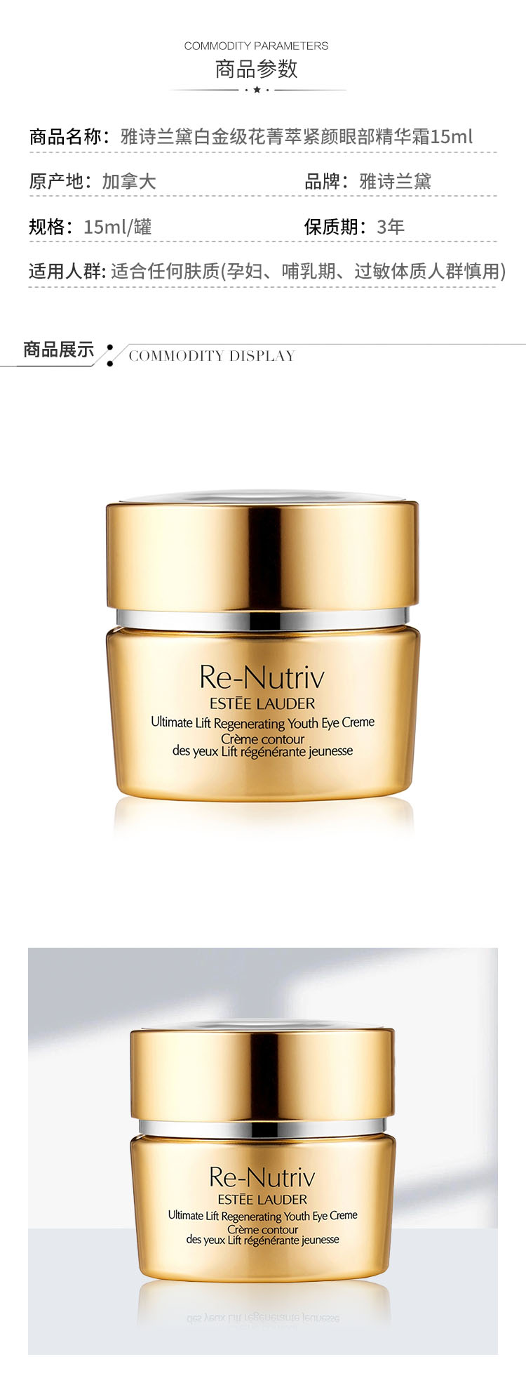 雅诗兰黛白金级花菁萃紧颜眼部精华霜15ml(清爽型)